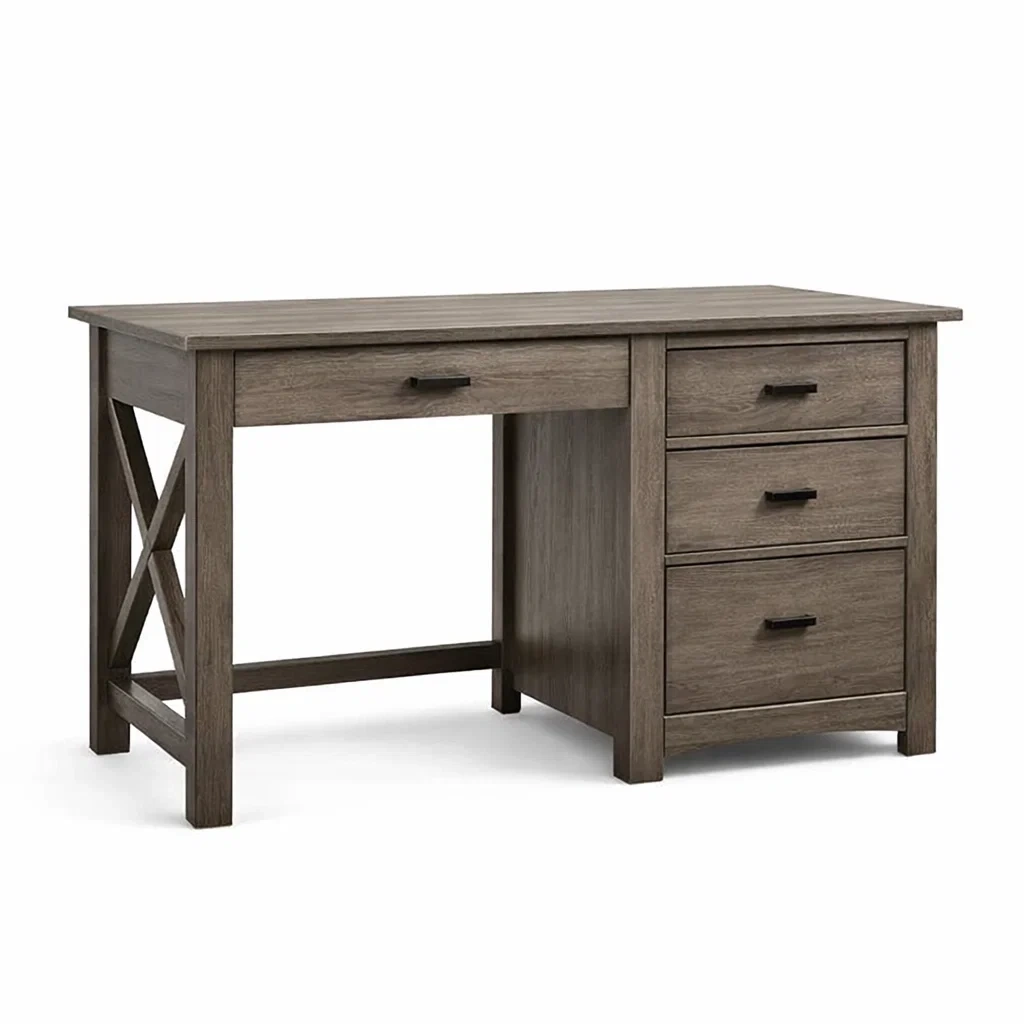 Schreibtisch holz mit schubladen und kreuzstütze 120 x 60 x 75 cm
