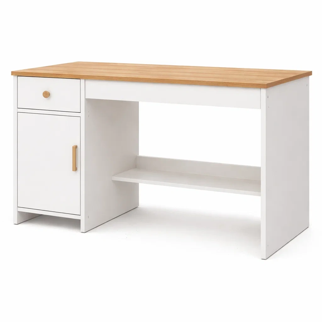 Schreibtisch holzfaserplatte weiß braun mit schublade und schrank